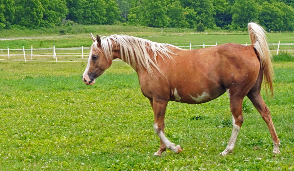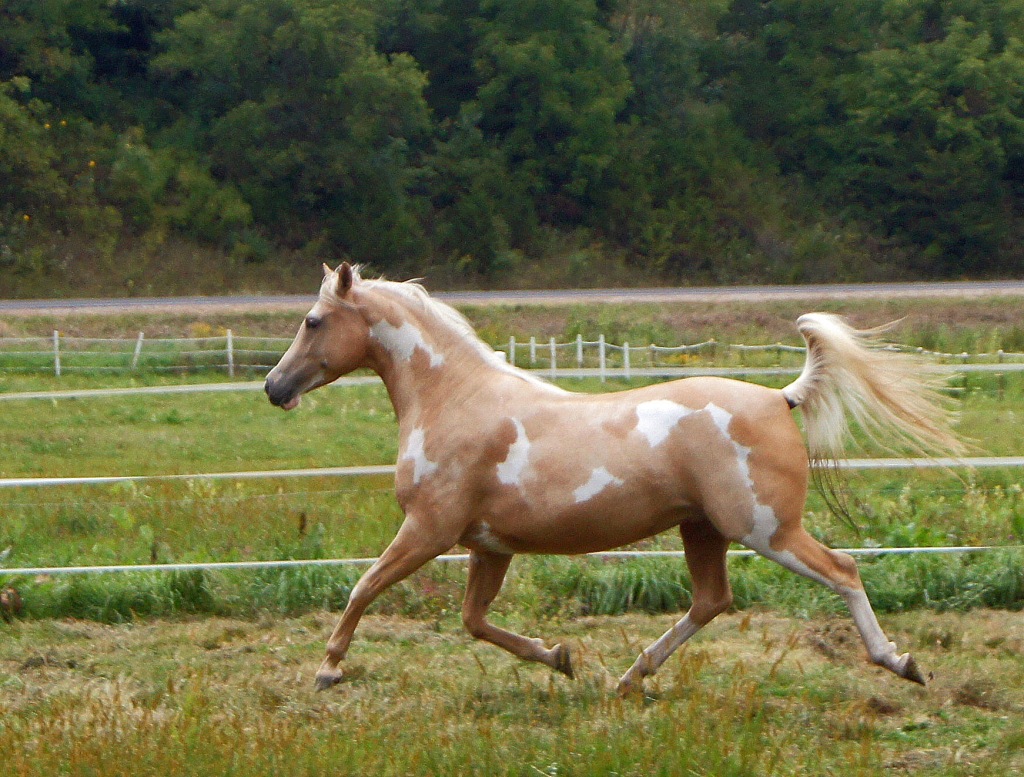 INNISHFAEL AURA – Aura is a 2015 Half-Arabian Palomino Pinto mare. She is registered Pinto and stands 15 hands tall. Aura is open for 2023, she will be bred to Darqq, a black purebred Arabian Pinto stallion for a 2025 foal.