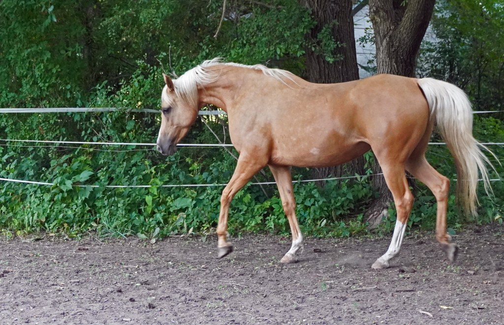 INNISHFAEL ISELEN: Iselen is a 7/8ths Arabian Palomino filly. She is the very last foal from our former stallion, Maranello and out of Innishfael La Belle shown above. Iselen will be joining the broodmare band in 2024.